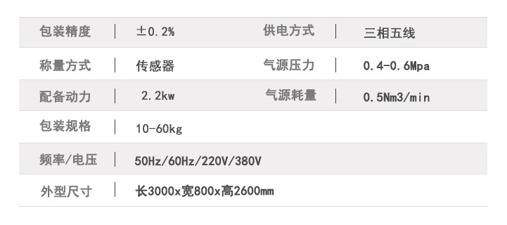 粉末包裝秤技術(shù)參數(shù):